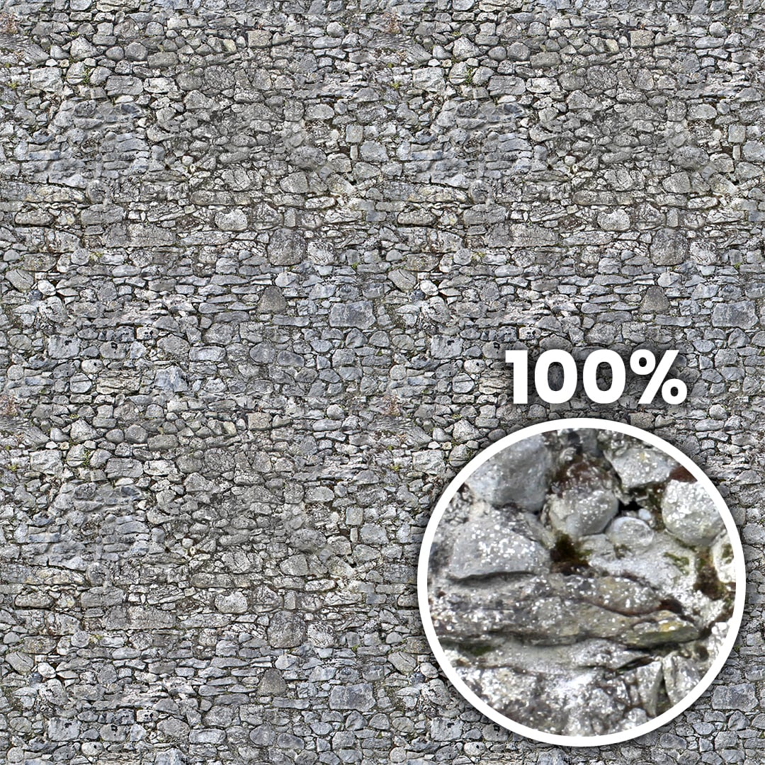 Tiling preview of an irregular old stone wall with moss on it