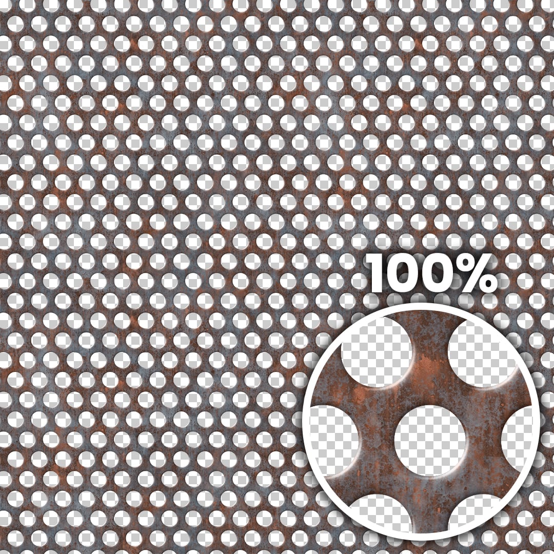 Tiling preview of a rusted perforated metal panel with circular holes