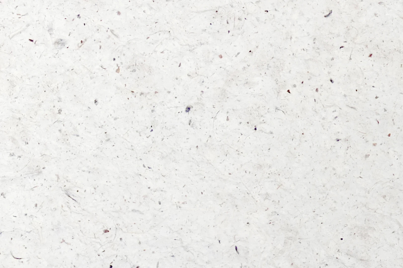 Close-up of an uneven handmade white paper with lots of threads and specks